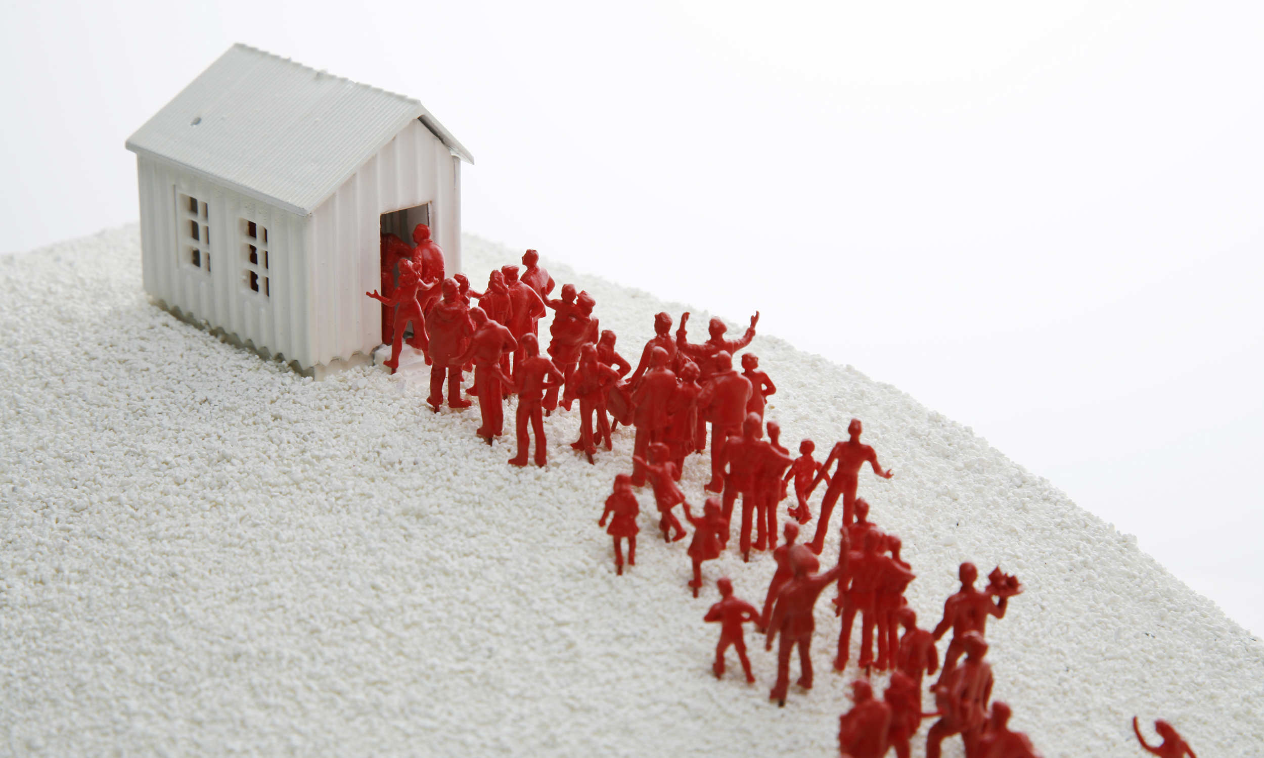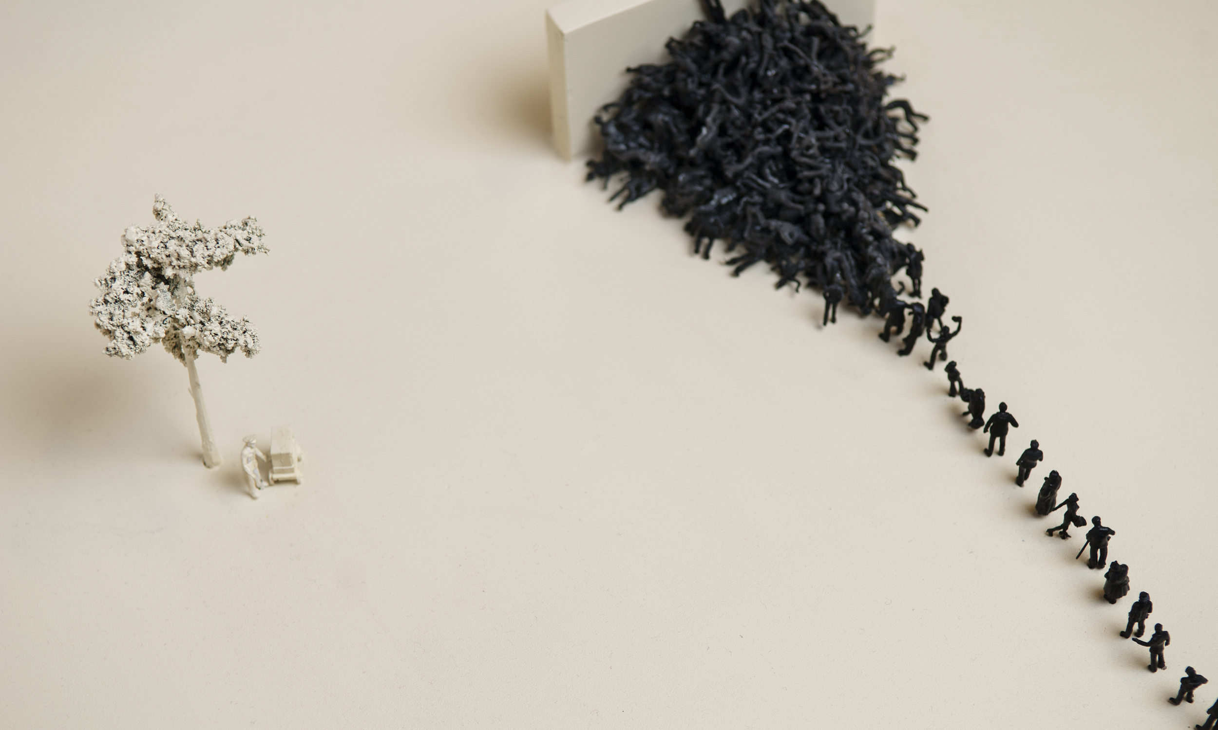 Technique: Styrofoam, spraypaint, modelfigures, MDF