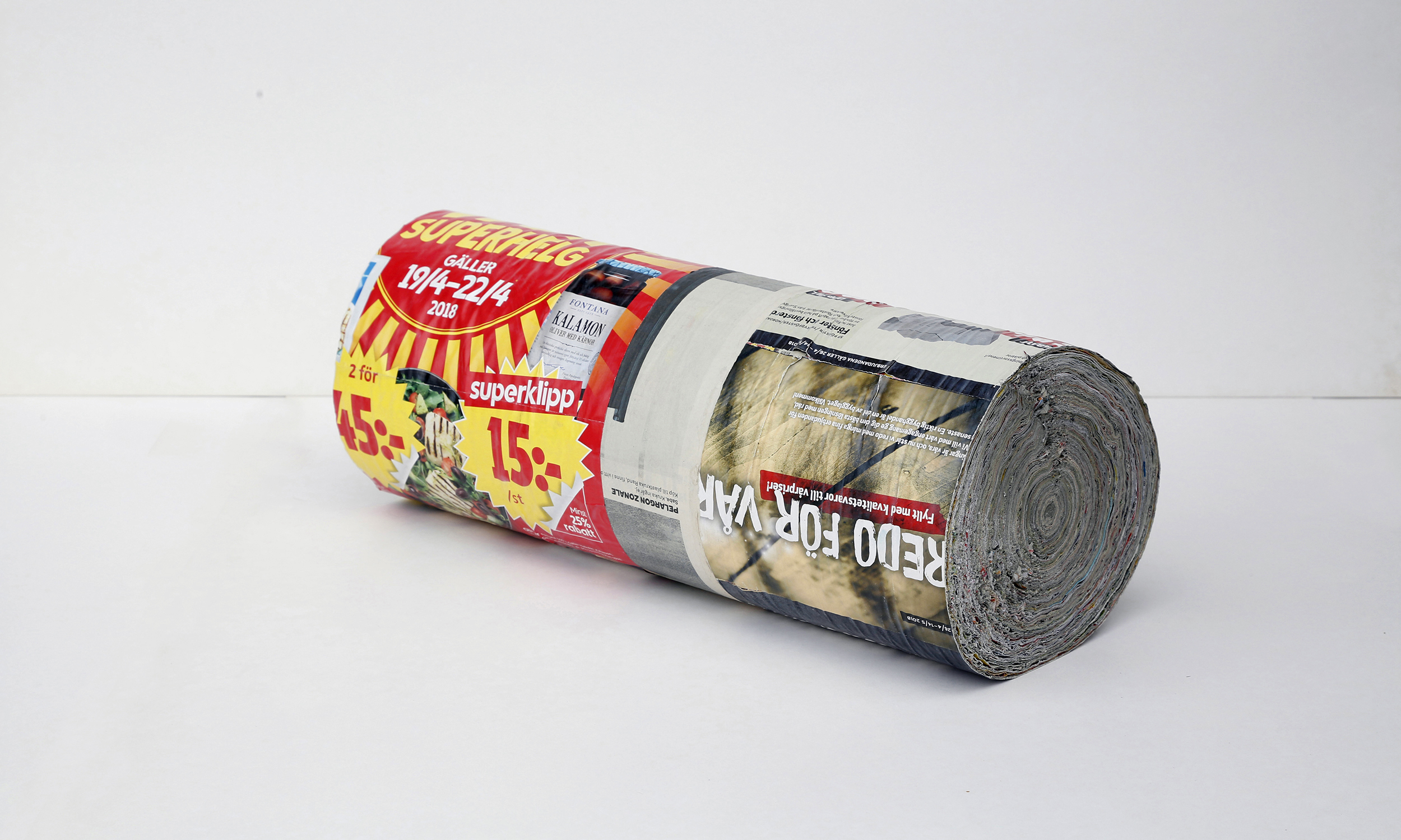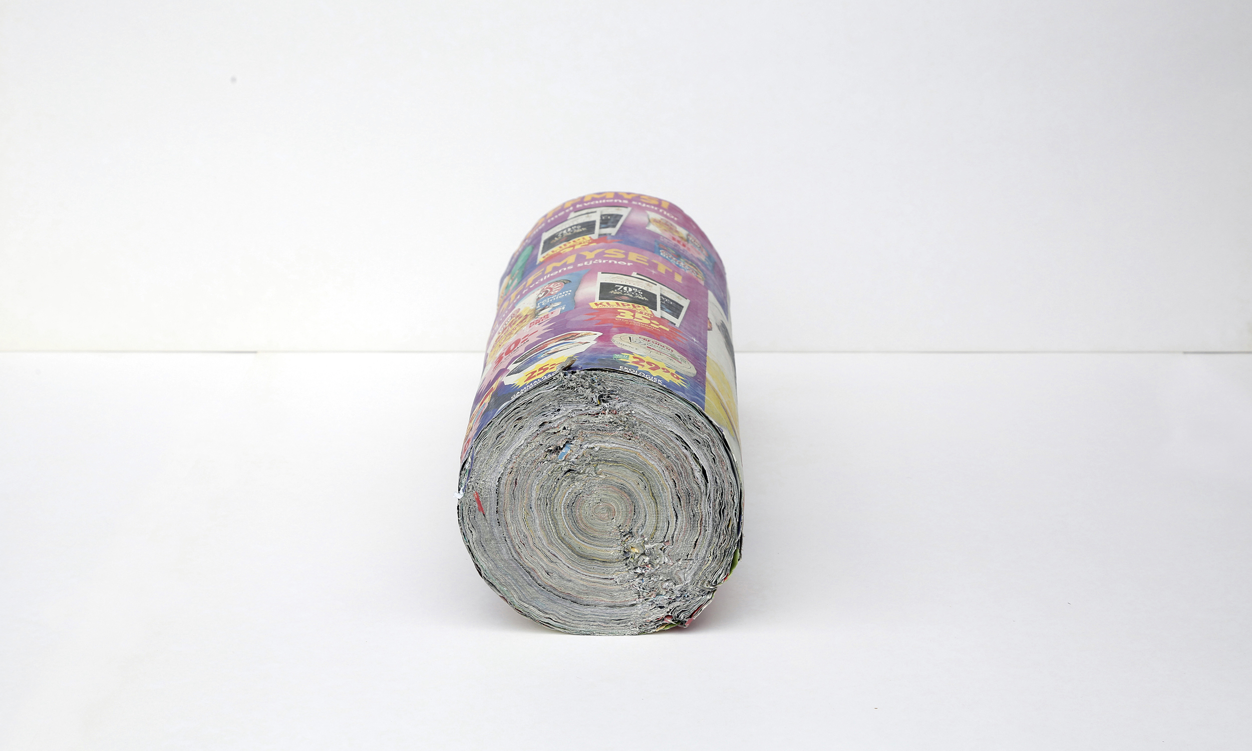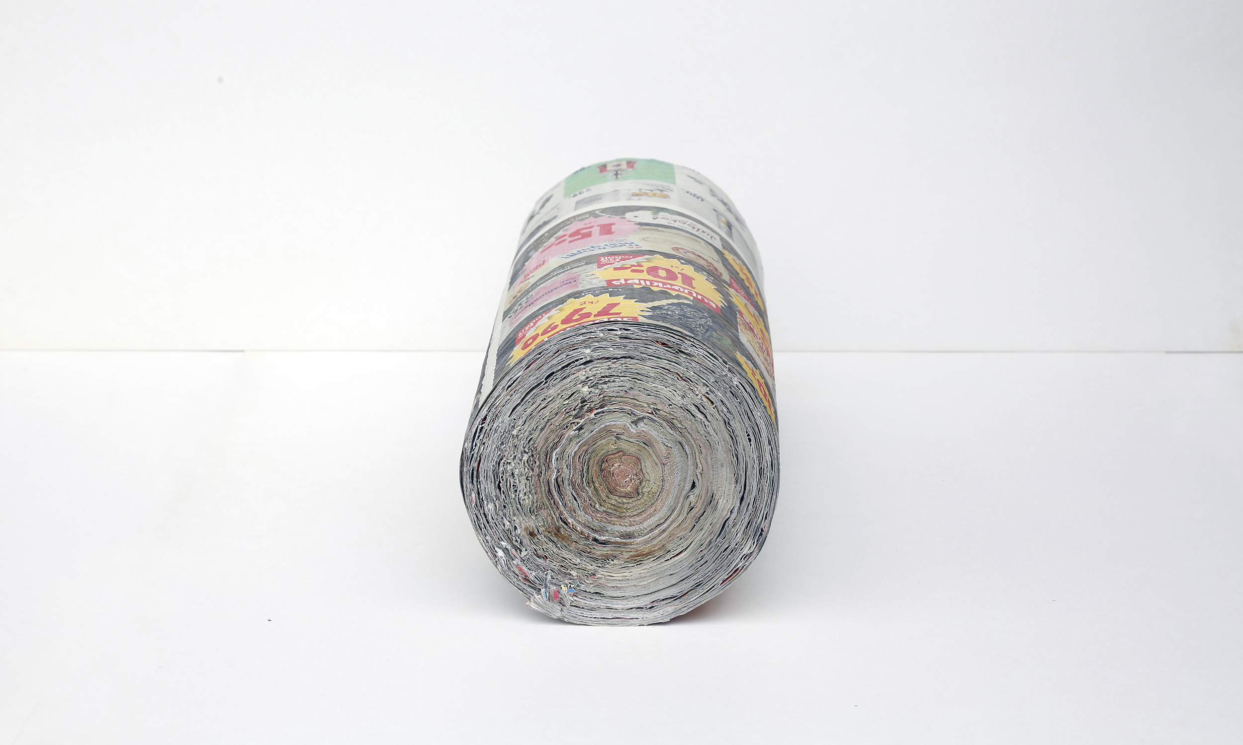 A collection of all the direct mail I recieved month by month during one year. Sheet by sheet glued and rolled up to resemble wood.